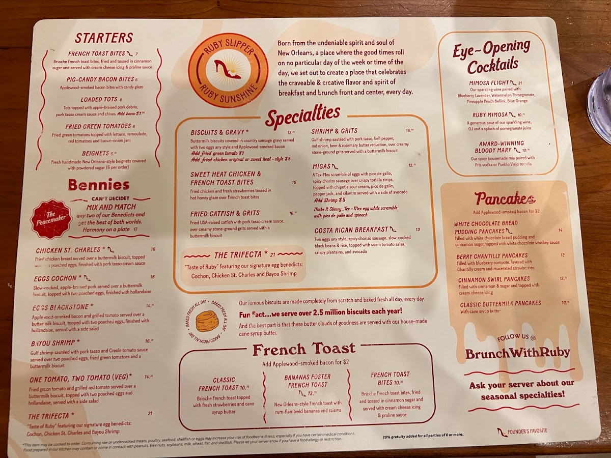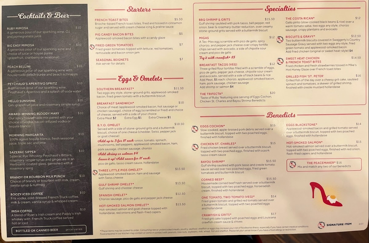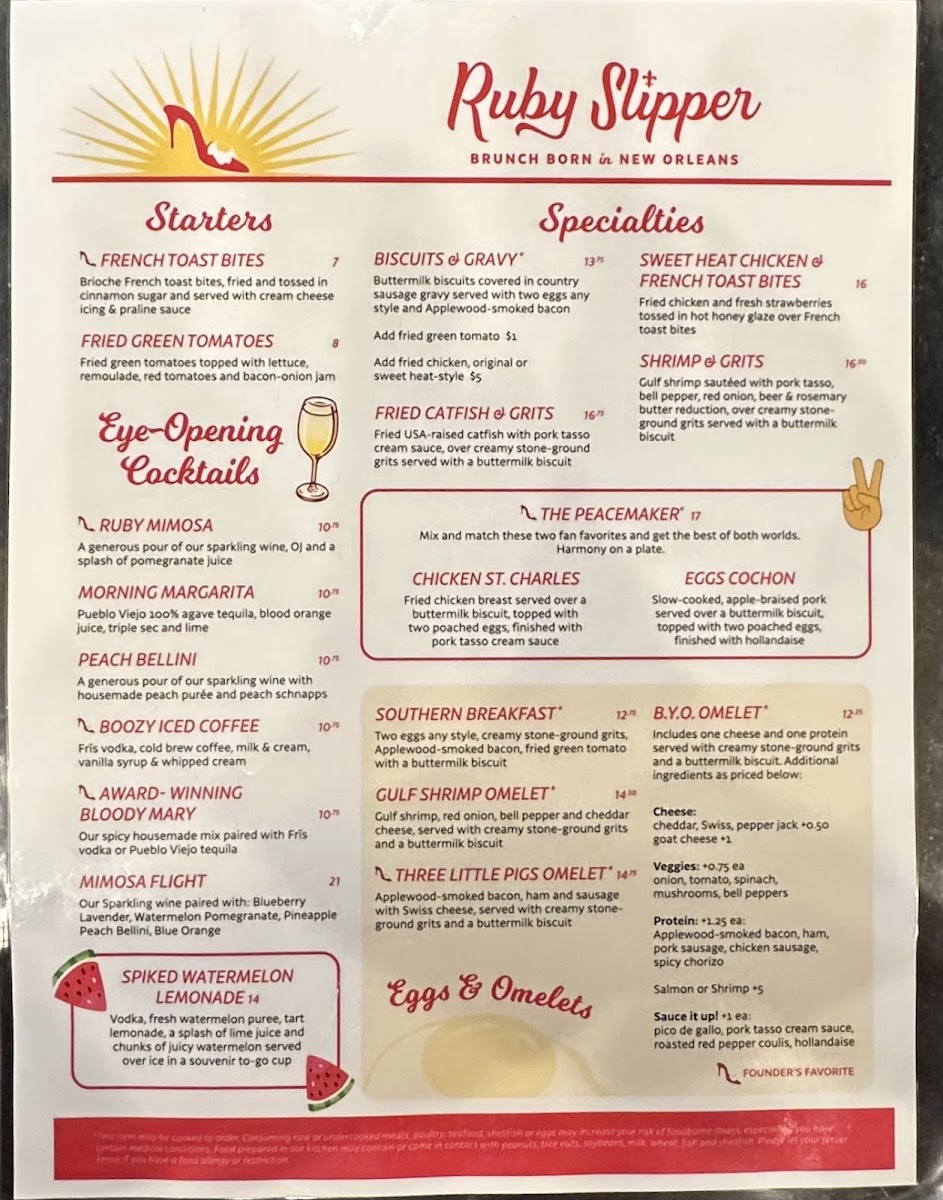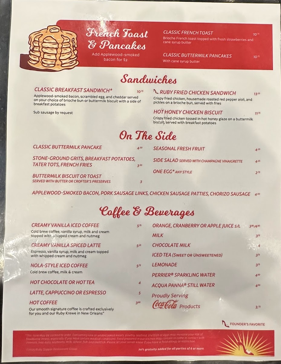 Ruby Slipper New Orleans Menu