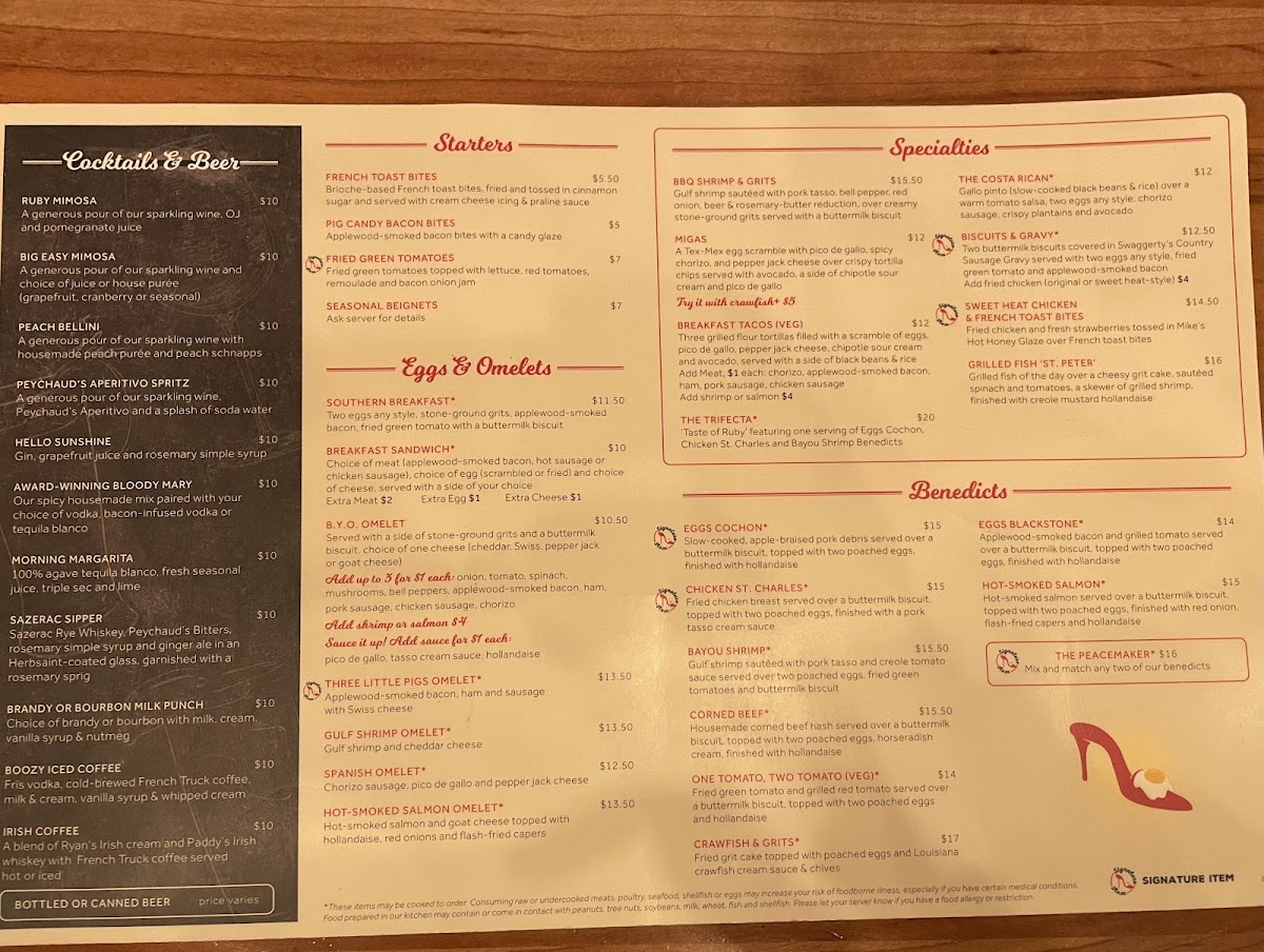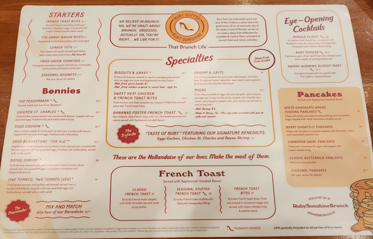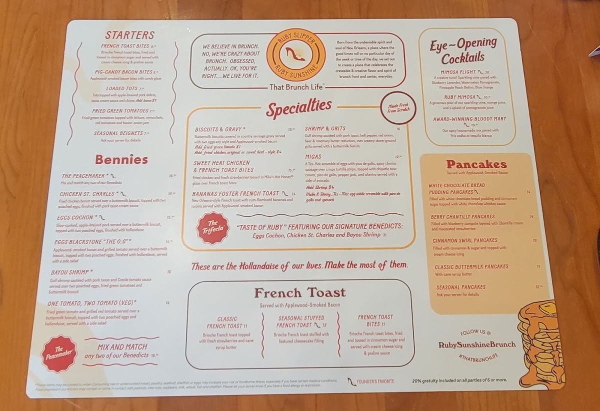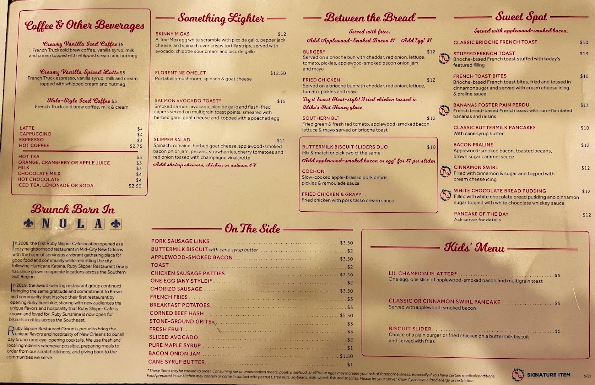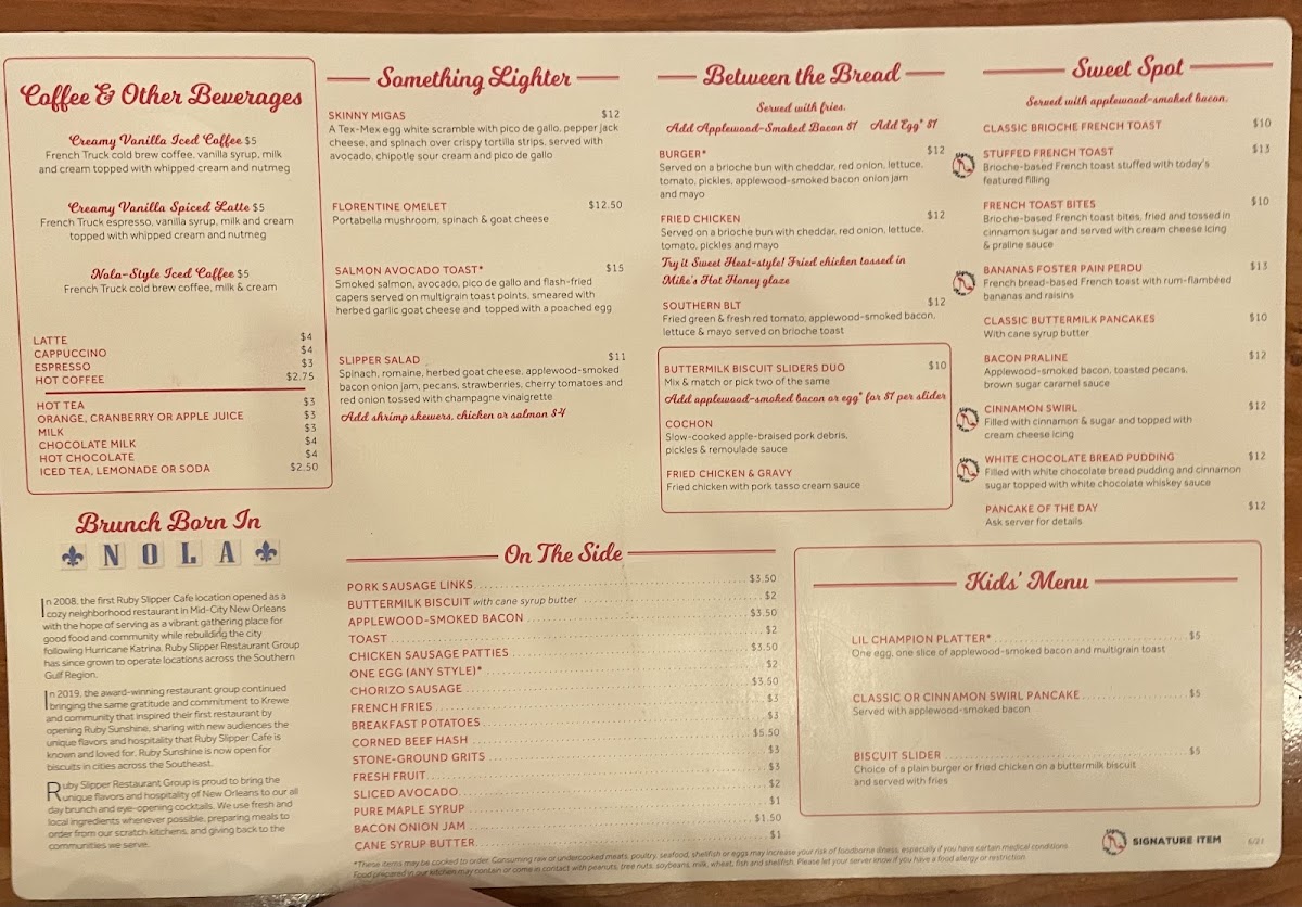 Ruby Slipper New Orleans Menu