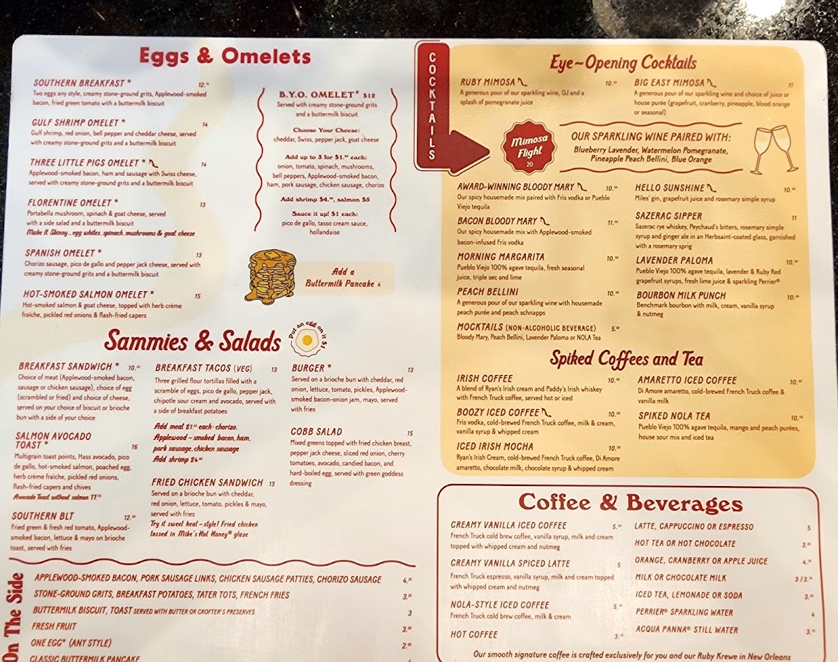 “Taste of Ruby” featuring our signature egg benedicts: Cochon, Chicken St. Charles and Bayou Shrimp
